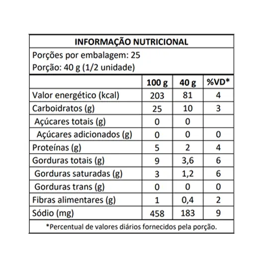 água, farinha de trigo enriquecida com ferro e ácido fólico, leite integral pasteurizado, farinha de rosca, peito de frango desfiado cozido temperado, batata em flocos, requeijão cremoso, óleo de algodão, creme vegetal, condimento preparado sabor galinha, proteína texturizada de soja, amido modificado, cebola, ligante, cloreto de sódio (sal), alho, salsinha, colorau. ALÉRGICOS: CONTÉM OVO, LEITE E DERIVADOS E DERIVADOS DE TRIGO E SOJA. PODE CONTER AVEIA, CENTEIO E CEVADA. CONTÉM LACTOSE. CONTÉM GLÚTEN.