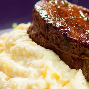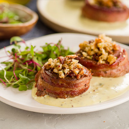 FILÉ MIGNON AO MOLHO DE CATUPIRY® ORIGINAL E MOSTARDA FINALIZADO COM FAROFA DE PÃO ITALIANO, BACON, PARMESÃO E ERVAS. 30 min 4