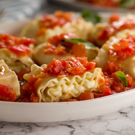 ROLINHO DE LASANHA RECHEADA COM PEITO DE PERU E CATUPIRY® ORIGINAL AO MOLHO DE TOMATE FRESCO E MANJERICÃO 30 min 4
